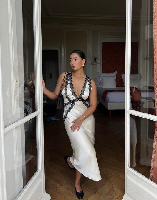 CAMILLE LACE CROSS BACK MIDI DRESS | CREAM/BLACKVendor:SHONA JOYRegular price $119.00 AUDRegular priceUnit price / per-
