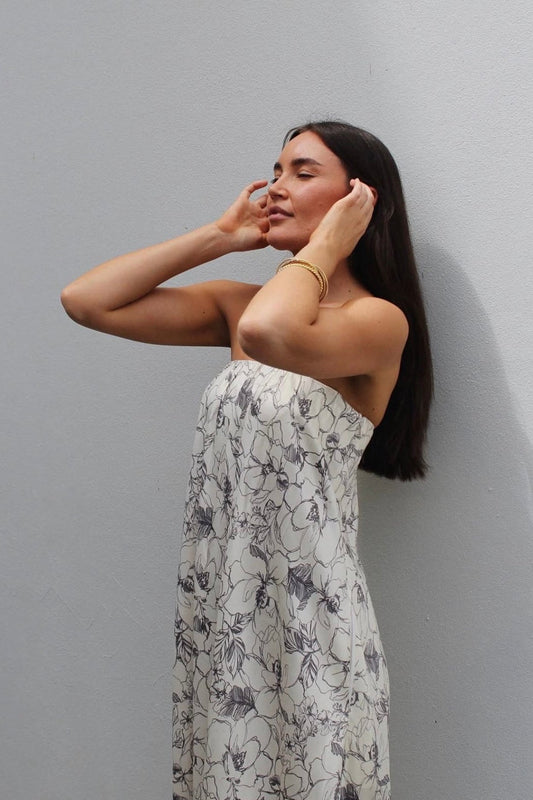 TILLIE STRAPLESS MAXI DRESS | LINEAR FLORAL