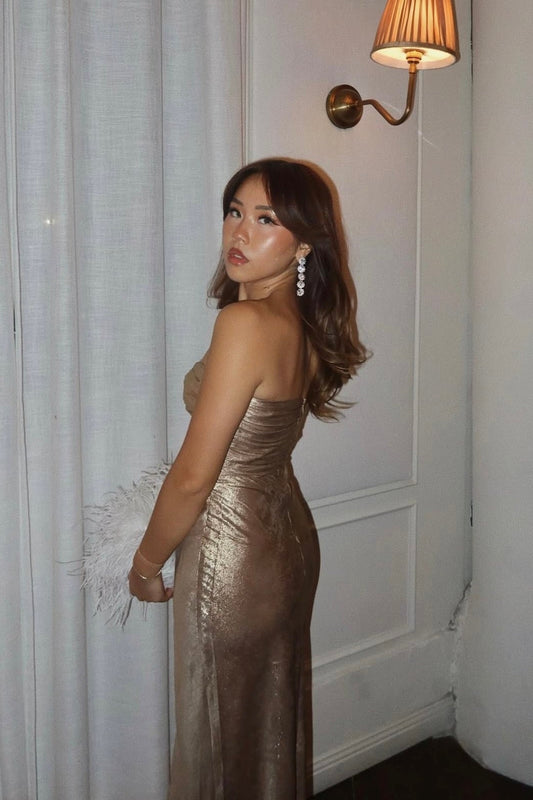 ROYALE STRAPLESS LACE UP MAXI DRESS | GOLD