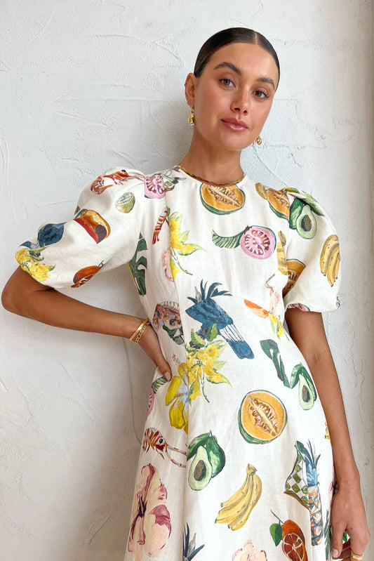 CAPUCINE PUFF SLEEVE MIDI DRESS