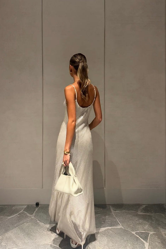 HIGH VOLTAGE SLIP DRESS | NUDE/SILVER