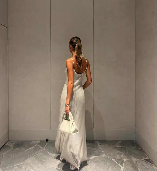 HIGH VOLTAGE SLIP DRESS | NUDE/SILVER