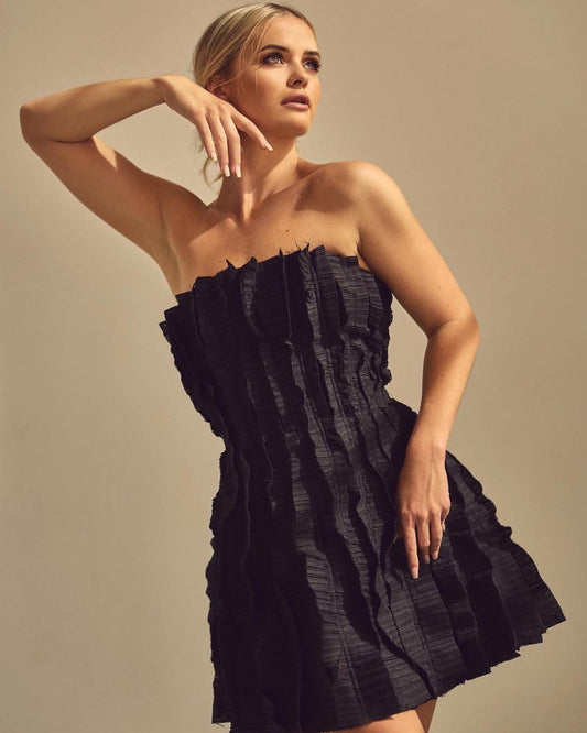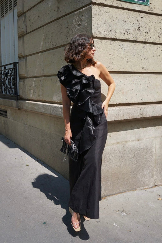 VIOLETTE BUBBLE HEM MAXI DRESS | BLACK