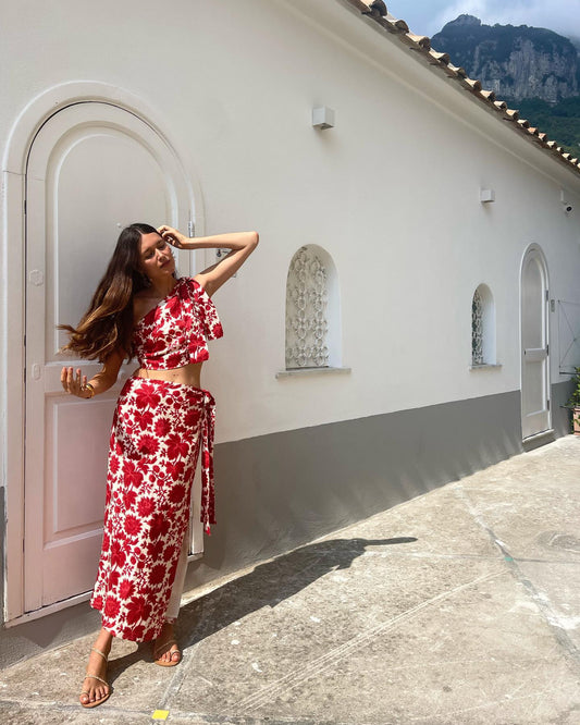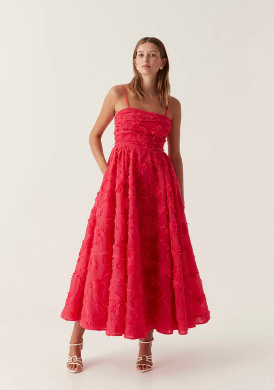 EVANGELINE CORNELLI MAXI DRESS | BOUGAINVILLEA RED