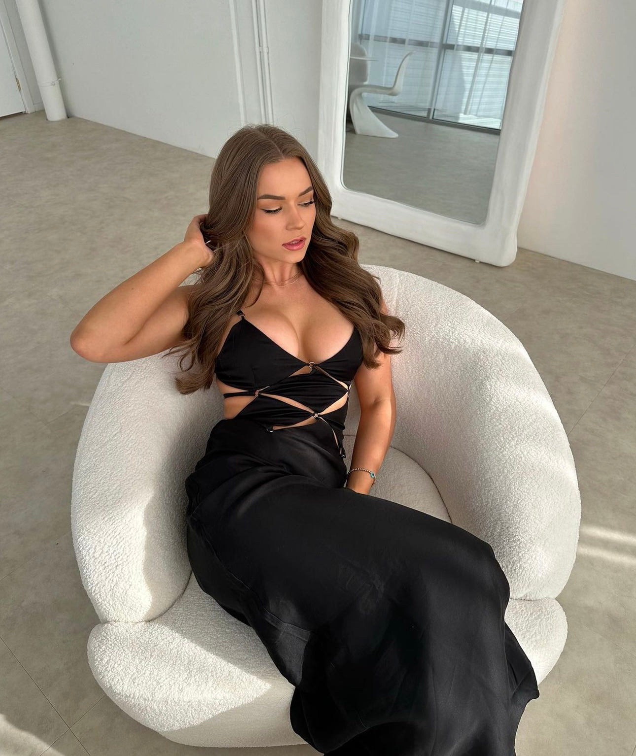 Make an entrance in The Diamond Days Strap Maxi Dress. The v-neck is panelled with statement diamond cut outs and features an open back with straps that flatter the silhouette. The dress is detailed with nickel ring hardware.