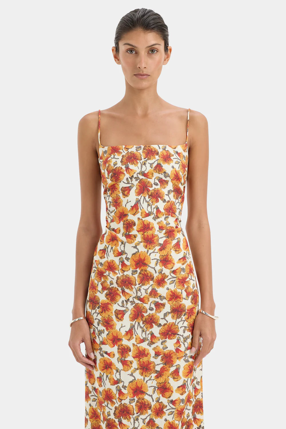 A striking midi designed for modern celebrations. Featuring a flattering fitted silhouette with refined detailing, this piece offers a confident yet effortless feel. The rich calendula hue adds warmth and impact, making it a standout choice while remaining timeless and wearable.